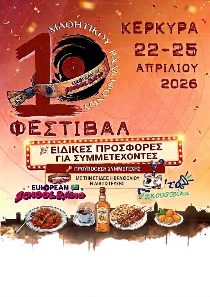 Η πόλη της Κέρκυρας υποδέχεται με χαρά τους μαθητές, τις μαθήτριες και τους εκπαιδευτικούς του Φεστιβάλ Μαθητικού Ραδιοφώνουνκαι το γιορτάζει με μοναδικές προσφορές!