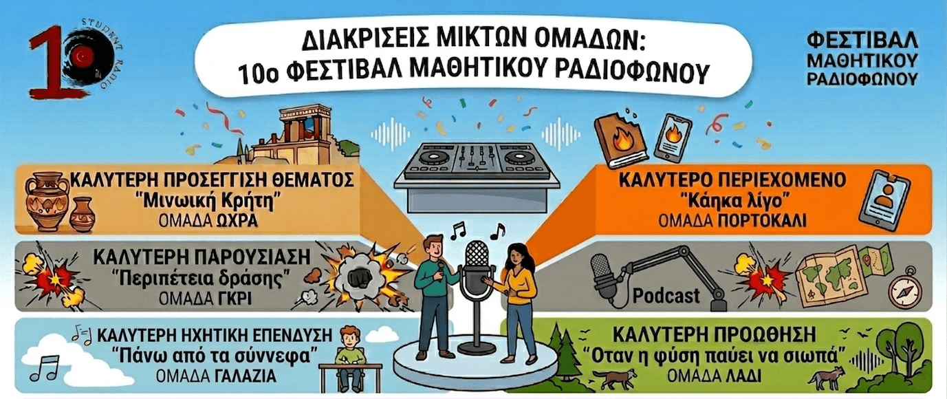 27 Apr (Ελληνικά) Η Φωνή των Μαθητών Ηχεί Δυνατά: Οι Νικητές των Μικτών Ομάδων του 10ου Φεστιβάλ! Posted at 22:38h in 10o Φεστιβάλ, Νέα by wpadmin Sorry, this entry is only available in Ελληνικά. Share Print page 1 Like
